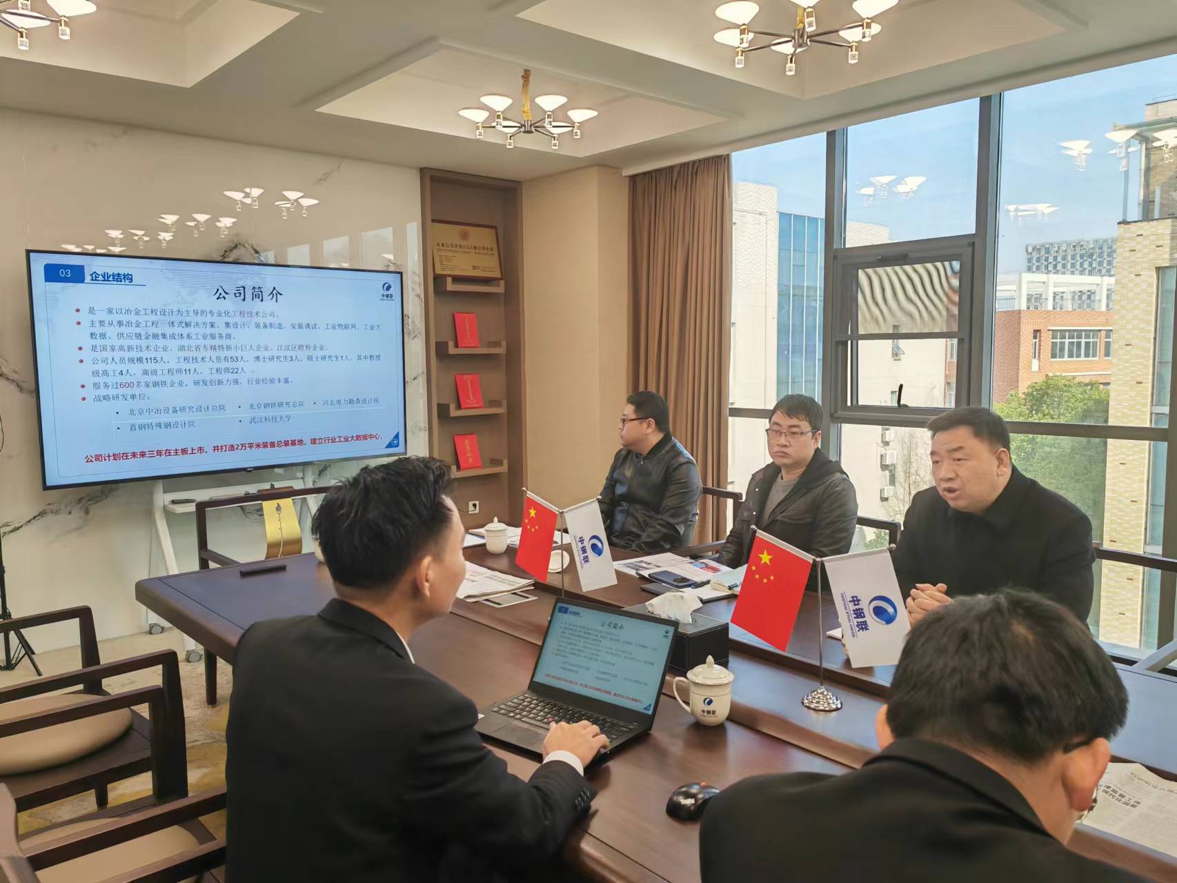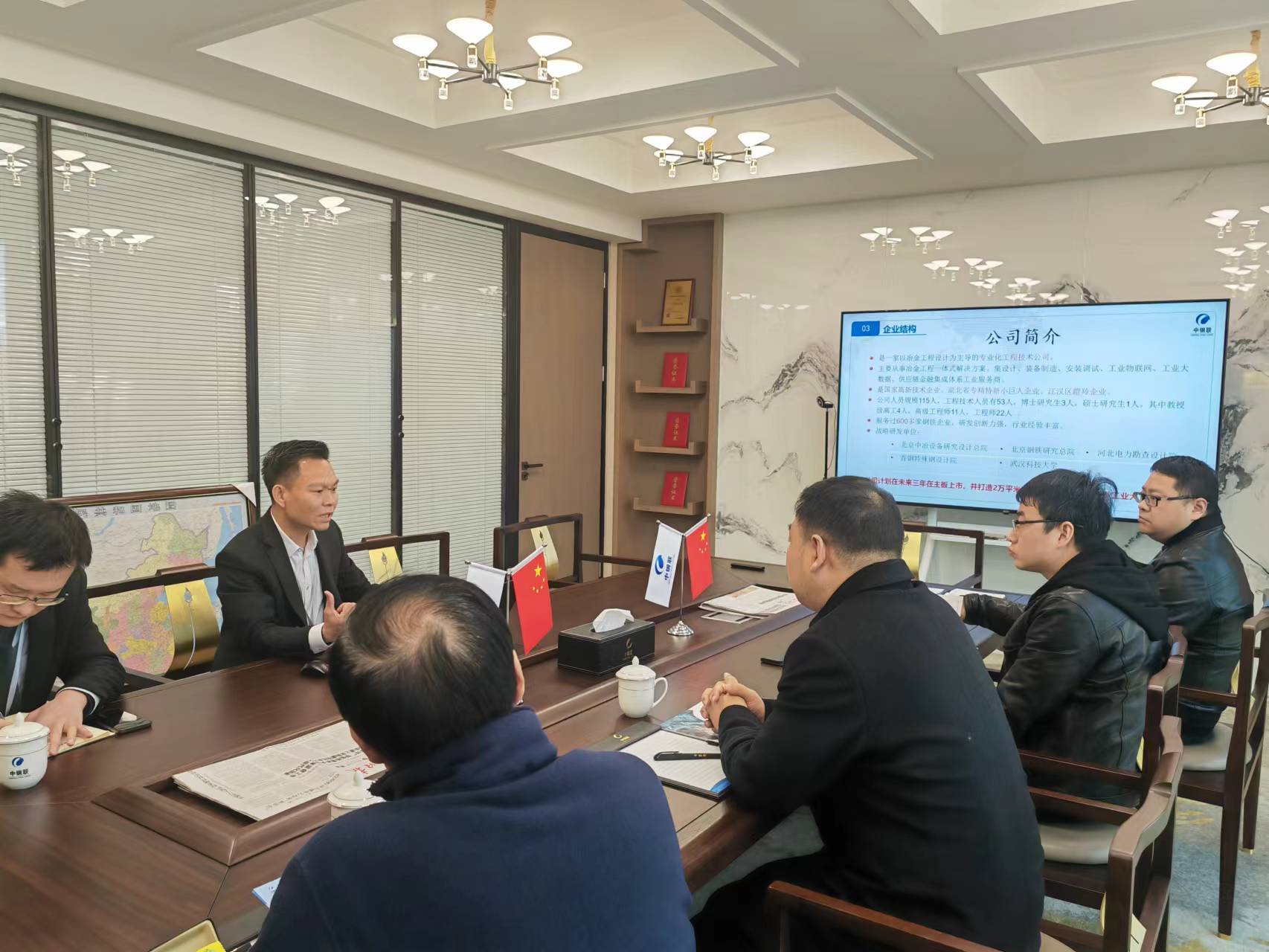 2 月20 日上午,武漢市江漢經(jīng)濟(jì)開發(fā)區(qū)管委會楊棟主任一行,前來湖北中鋼聯(lián)冶金工程有限公司實(shí)地調(diào)研交流,中鋼聯(lián)董事長符乃良、副總經(jīng)理金巍等人進(jìn)行了熱情接待。