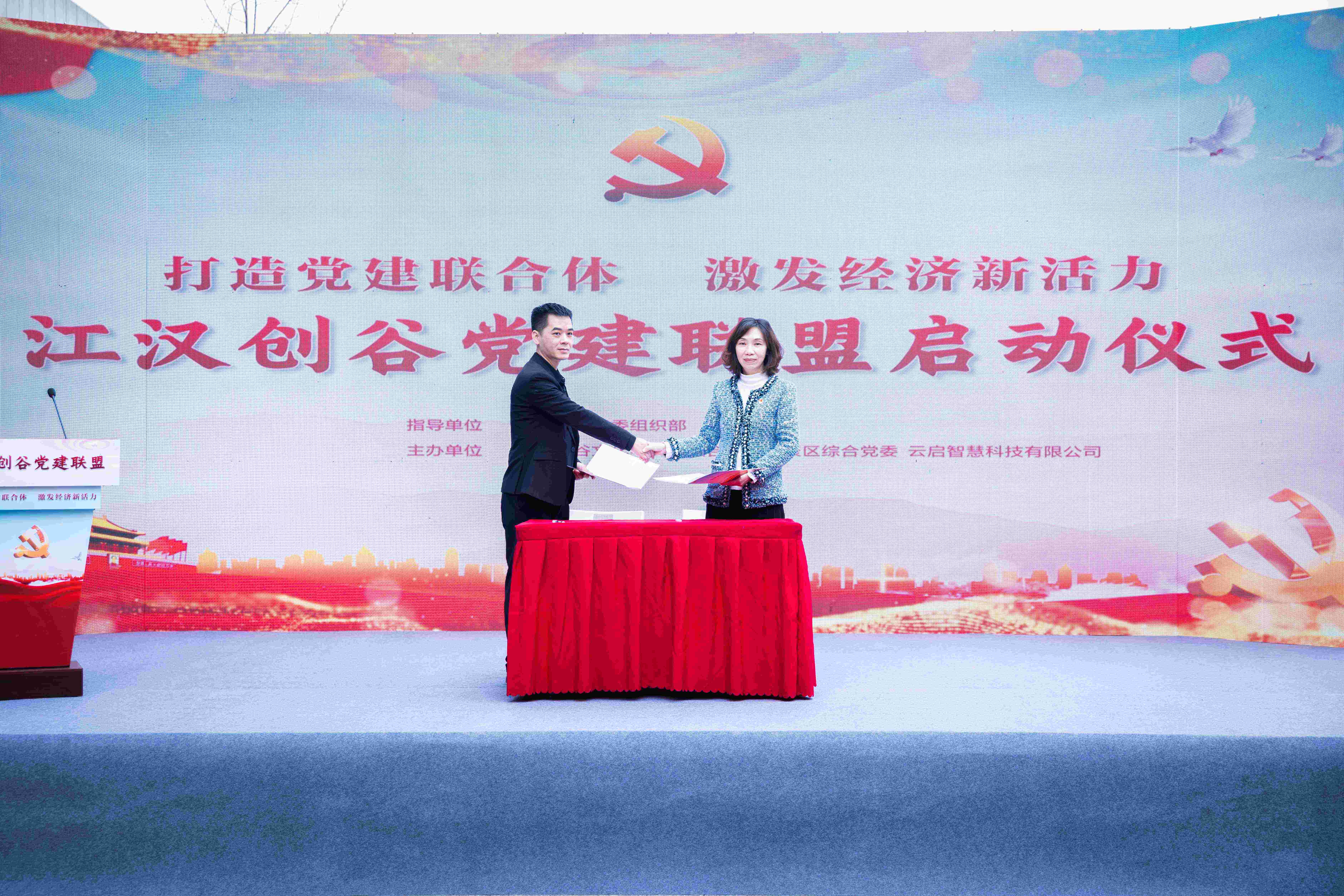 深入貫徹落實新時代黨的建設總要求和黨的組織路線,切實夯實 基層黨建基礎,解決企業困難,優化營商環境,促進經濟發展,江漢經濟開發區工委決定成立黨建聯盟,于 2023 年 3 月 29 日上午舉辦“江漢經濟開發區黨建聯盟啟動儀式”活動,湖北中鋼聯冶金工程有限公司黨支部代表金巍同志參加了本次活動,并當選 12 家黨建聯盟輪值主席之一,江漢區委組織部胡金利部長、開發區工委楊棟書記給 12 家黨建聯盟輪值主席頒發了證書并合照。